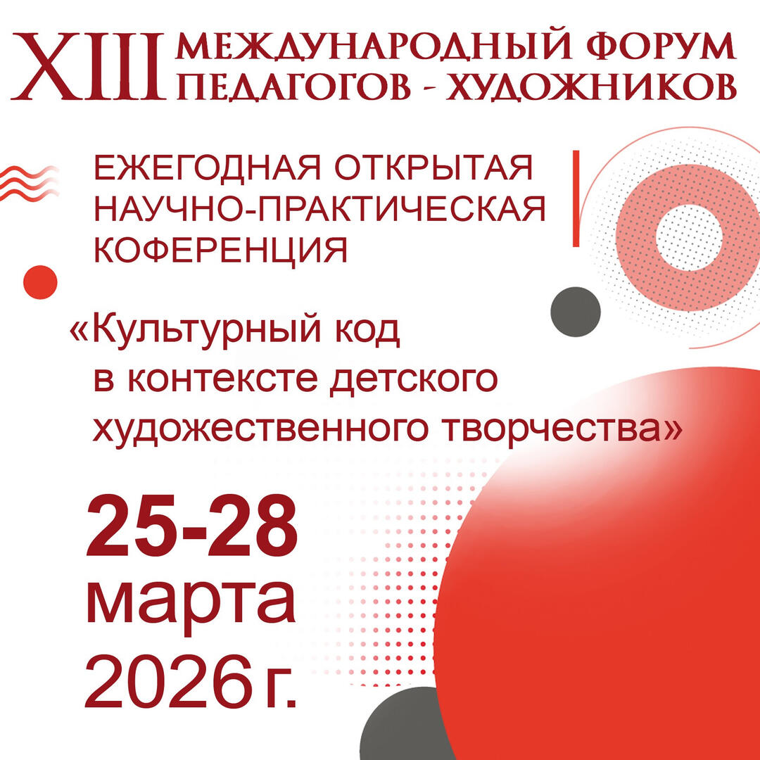 В рамках Форума состоится Ежегодная открытая конференция «Культурный код в контексте детского художественного творчества». Тема 2026 года: «Сохранение и развитие отечественных ценностных традиций в художественном образовании».