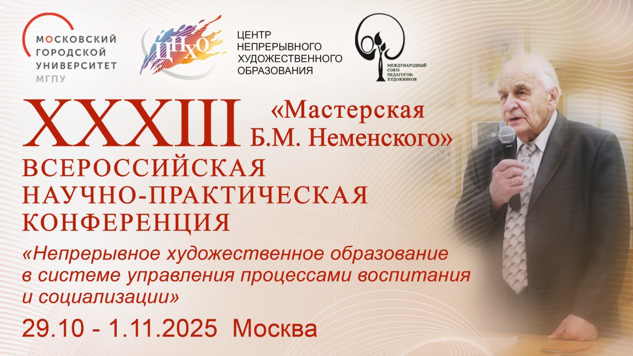 С 29 октября по 1 ноября в Москве пройдёт Научно-практическая конференция «Непрерывное художественное образование в системе управления процессами воспитания и социализации». XXХIII «Мастерская Б.М. Неменского».